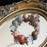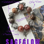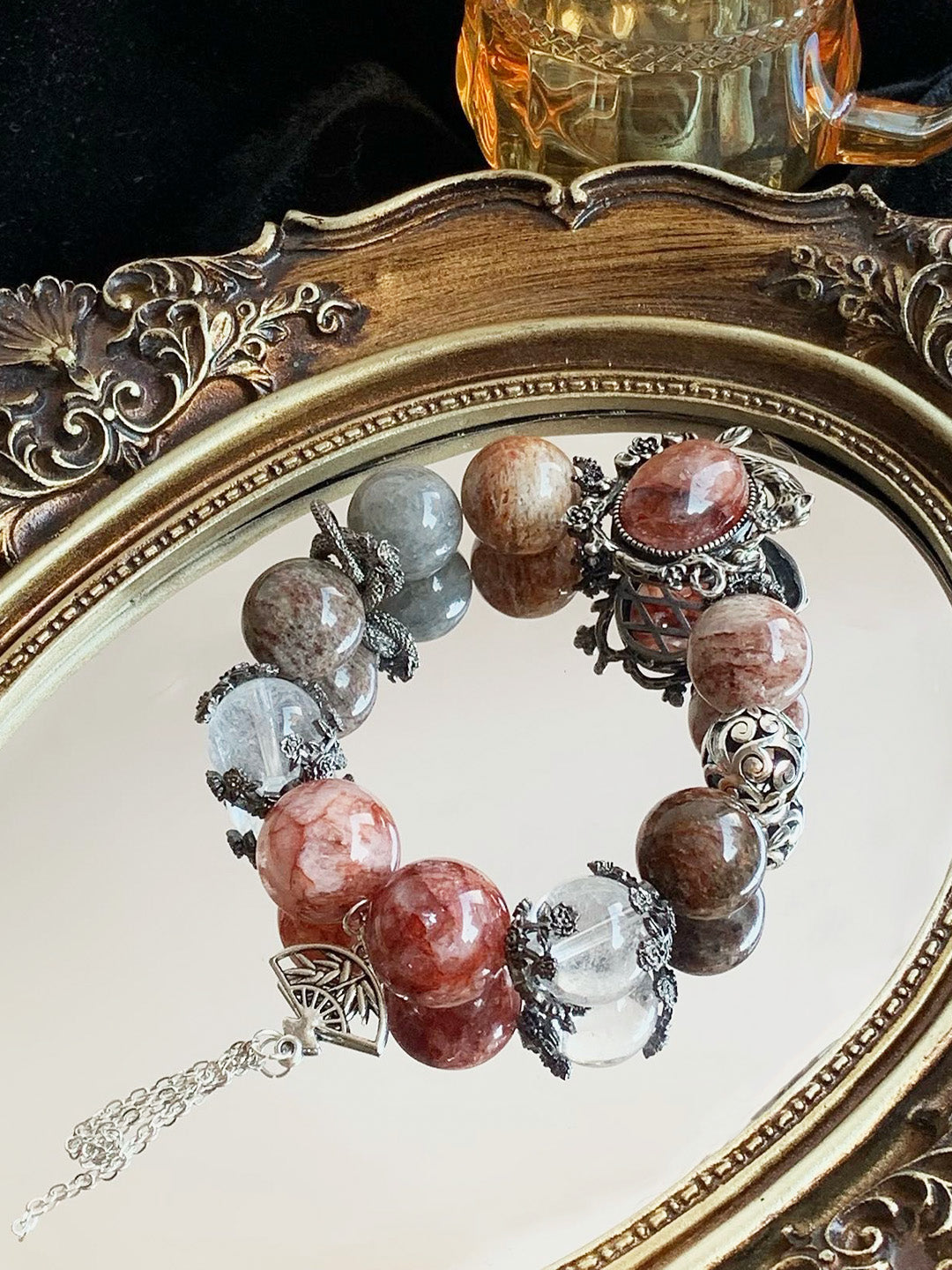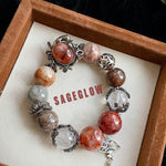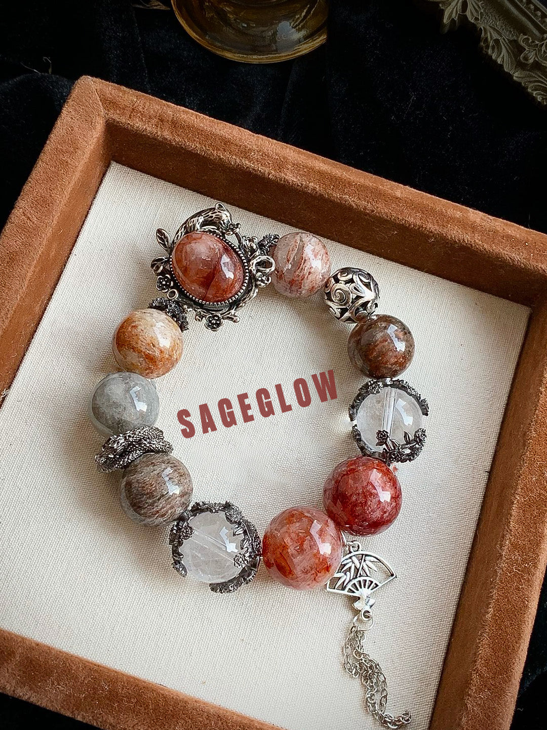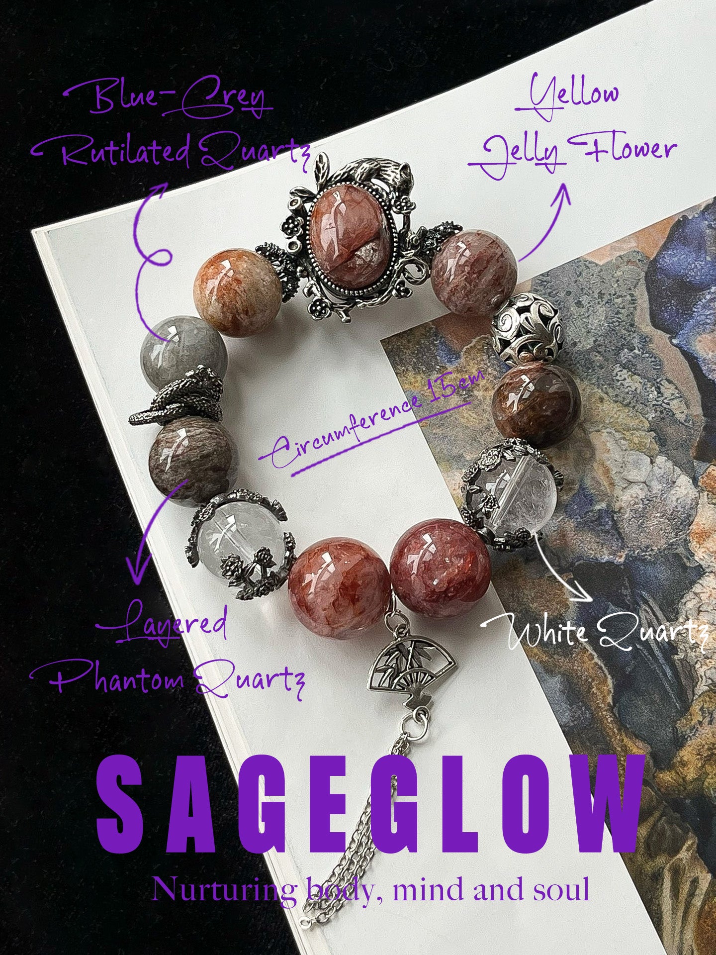The Flame of Nature Bracelet is infused with the essence of the Fire (火) element in the Wu Xing (Five Elements) system, representing passion, vitality, and transformation. This vibrant piece is crafted from rich red tones, blending 16 mm Yellow Jelly Flower, Layered Phantom Quartz, Blue-Grey Rutilated Quartz, and White Quartz, creating a powerful synergy of energies. Yellow Jelly Flower amplifies joy and positive energy, while the Layered Phantom Quartz fosters spiritual growth. Blue-grey rutilated Quartz promotes intuition, and White Quartz enhances clarity and focus.