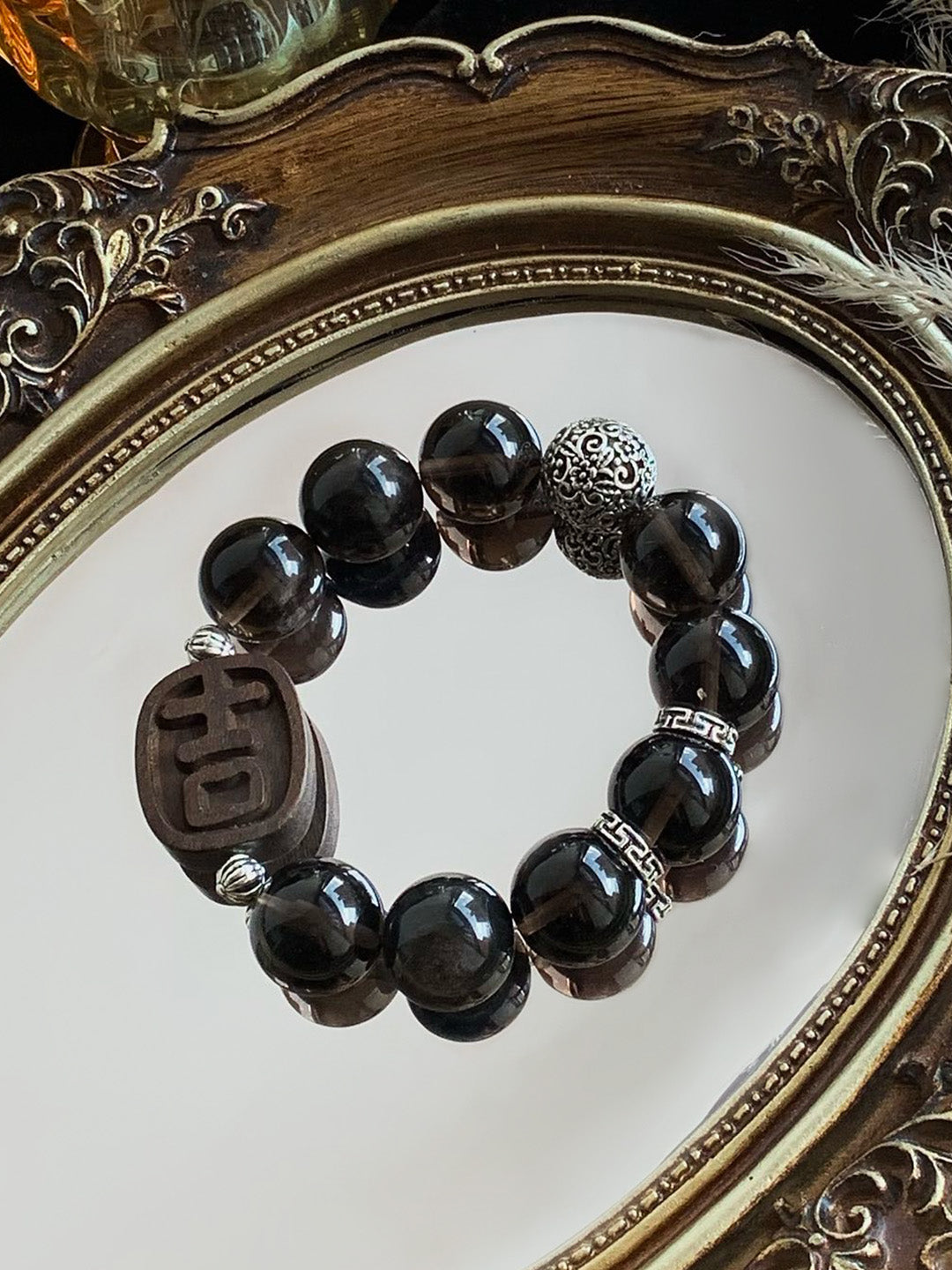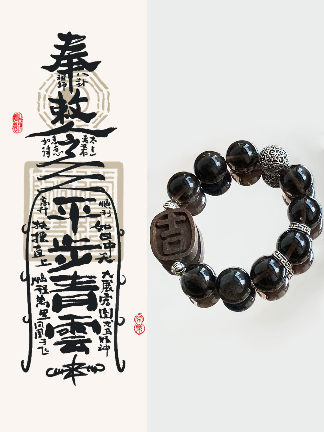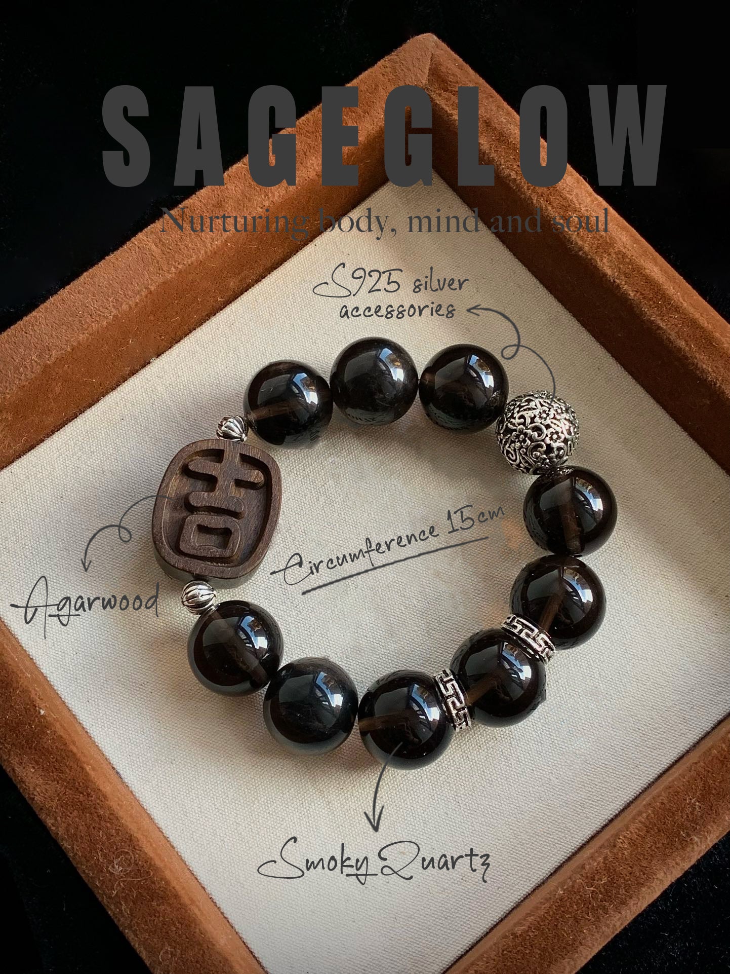 The Fortune’s Blessing Bracelet embodies the Water (水) element in the Wu Xing (Five Elements) system, offering balance, emotional healing, and adaptability. Crafted with 16 mm Smoky Quartz, this bracelet promotes clarity and grounding while dissolving negative energy. The rectangular Agarwood block engraved with the Chinese character “吉,” meaning good fortune and auspiciousness, serves as a powerful symbol of blessings and prosperity.