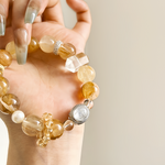 The Golden Blossom Bracelet is an elegant and modern piece, embodying the Earth () element in the Wu Xing (Five Elements) system. Crafted with Yellow Jelly Flower, Yellow Citrine beads, and luminous pearls, this bracelet symbolizes stability, nourishment, and abundance. The Yellow Jelly Flower and Citrine beads together provide grounding energy, helping to harmonize emotions and enhance creativity. The addition of pearls brings a touch of timeless grace, representing purity and feminine strength.